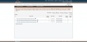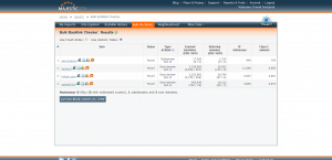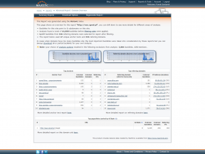 5. Generowanie raportów jest ograniczone do 60 sztuk w miesiącu. Poniżej krótki raport odnośnie bloga. Widać na nim zarówno słowa kluczowe, na jakie był pozycjonowany, jak również domeny na jakich istnieje (lub istniał) link do bloga. Wszystkie wartości są klikalne czyli po najechaniu myszką i kliknięciu np w anchor „audyt stron www” dostaniemy informację o linkach prowadzących do bloga.