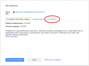 Klikając w dowolny adres URL pozyskujemy informację szczegółową o błędzie, a w zakładce „Link z domeny” mamy dokładny adres pod którym wystąpił wskazany błąd.