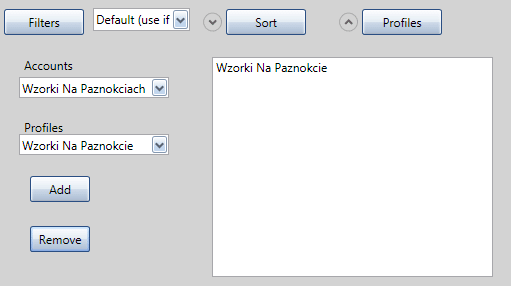 Teraz jeszcze trzeba wybrać profil, z którego będziemy pobierać dane. Wystarczy kliknąć przycisk ?Profiles? i wybrać odpowiednie ustawienia – jak na przykładzie poniżej.