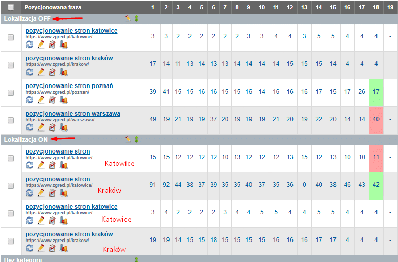 Wyniki prezentowane dla Warszawy, jak i dla Wrocławia na określone frazy rzecz jasna będą się od siebie różniły. Spowoduje to różnice wskazania, na jakiej pozycji na daną frazę strona internetowa, wyświetla się w wynikach wyszukiwań. Jest to szczególnie istotne w przypadku pozycjonowania za efekt (metoda, od której czas odejść, jeżeli ktoś jeszcze tego nie uczynił).