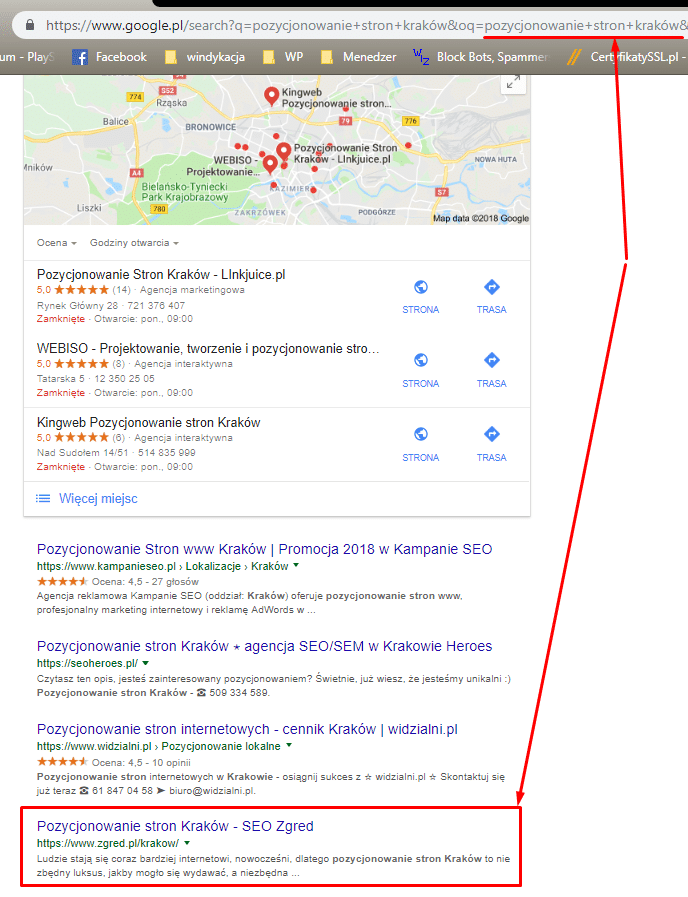 W sumie niby logiczne a teraz zerknijmy jak wyglądają wyniki dla takiego zapytania (do każdego wyniku dodajemy 3 pozycje bo są tam mapki):