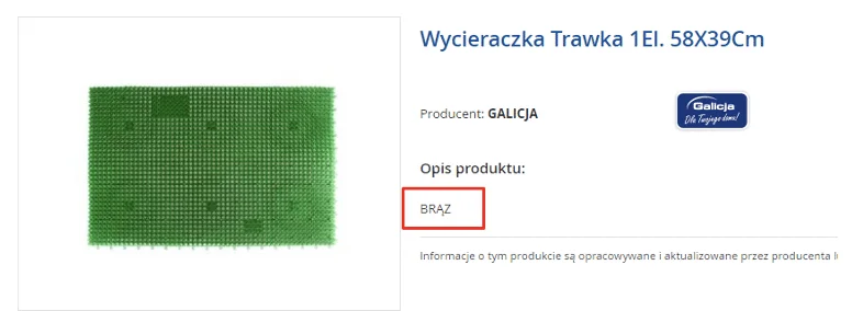 - duplikacja treści – szczególnie widoczna na wariantach kolorystycznych danego produktu