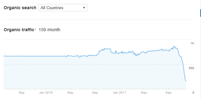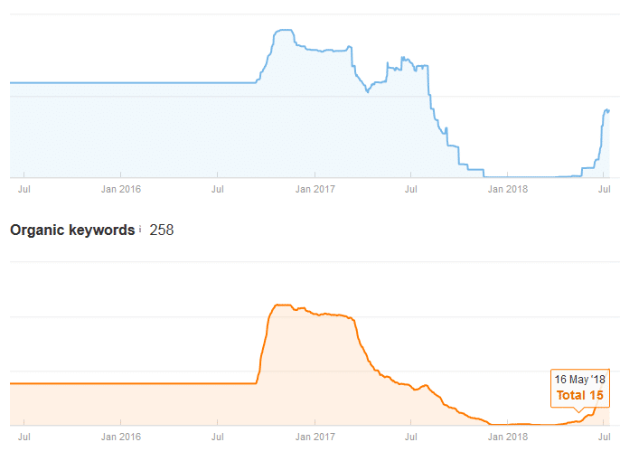 Jeśli domena była niedawno tj: w przeciągu ostatnich 3msc widoczna na kilkadziesiąt lub kilkaset fraz to świadczy o tym, że Google miało ją głęboko w sercu. Widoczność można sprawdzić przy pomocy Semstorm, Senuto lub po prostu aHrefs zakładka Organic Search.