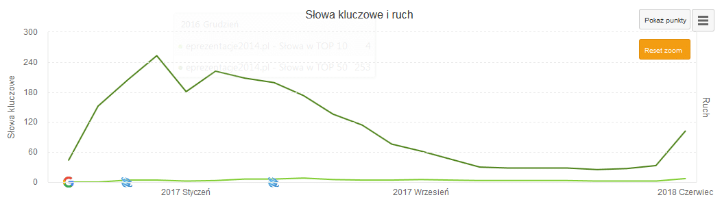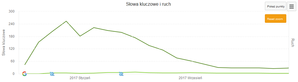 Najlepiej jeśli wykres ruchu/widoczności spadł jak najbardziej w dół ? oznacza to mniej więcej tyle, że ktoś zapomniał przedłużyć domenę i cała widoczność poleciała. Tutaj są również wyjątki (jak zawsze!), bo proces wyindeksowywania mógł trwać dłużej. Warto przy okazji zbadać również linki.