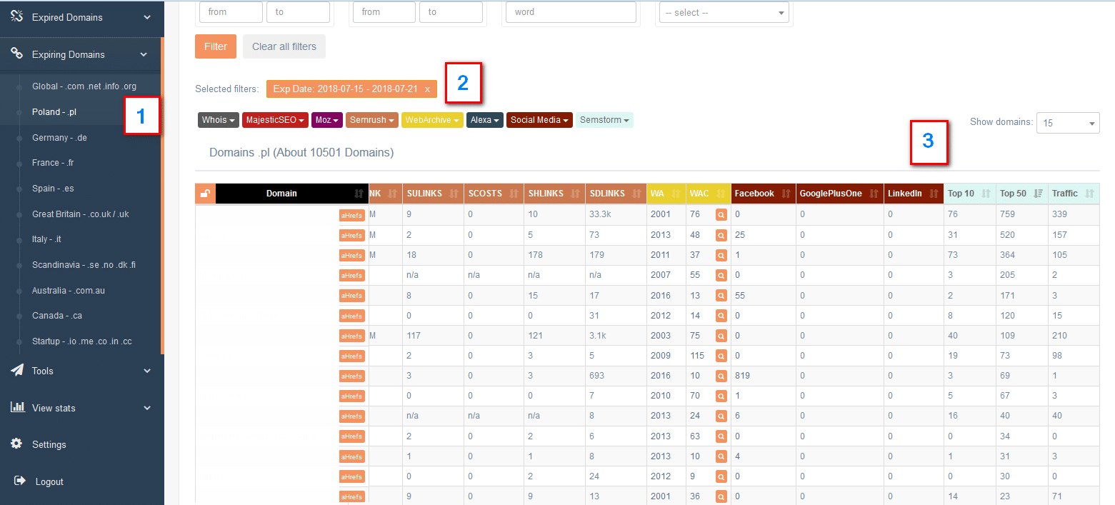 Tutaj nie będę ukrywał i od razu powiem, że korzystam z mojego narzędzia Expired1.com do znajdywania domen które wygasły albo wygasają. W Polsce wiele domen (tych bardzo jakościowych ) z automatu zostaje przechwyconych przez Aftermarket i potem ludzie ( lub sam AM ) próbuje te domeny sprzedać dla userów.