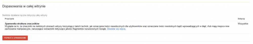Czasem może się zdarzyć, że Gogole nałoży karę ręczną: