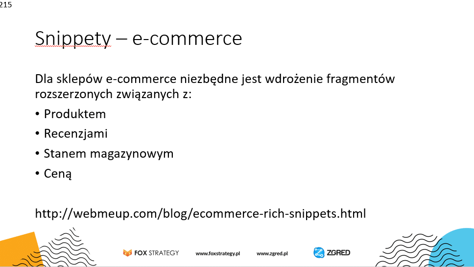 Dodatkowo można wdrożyć snippet związany z ?Organization?, ?Logo?, ?Localbusiness? ? w tym ostatnim przypadku jest to istotne dla firm posiadających sklep stacjonarny w mieście.