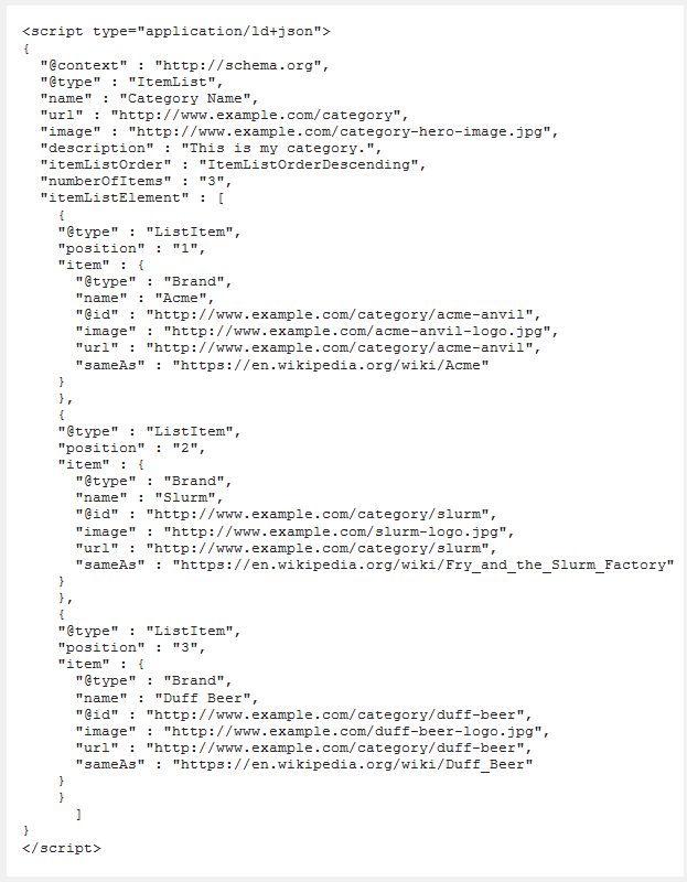 I tutaj ważna rzecz ? implementacja drzewa „Schema.org/Product” może występować jedynie na karcie produktu. Nie wolno wyświetlać tego typu snippetów na podstronach kategorii. Do tego celu służy drzewo ?Schema.org/ListItem? lub ?Schema.org/SomeProducs? ? przykładowo:
