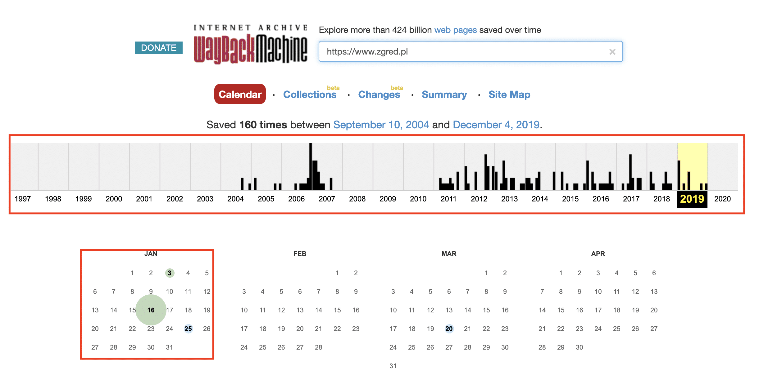 Jeśli strona www istnieje już długi czas w Internecie to można sprawdzić jej historię i sprawdzić jak wyglądała wcześniej, jaką miała strukturę, grafiki, pliki, układ i tak dalej. Można też dzięki temu zweryfikować historię domeny.