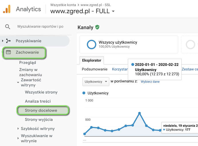 Jeśli chcemy przeanalizować liczbę wejść na stronę za pomocą Google Analytics musimy wykonać następujące czynności po zalogowaniu się. Do GA z reguły wszyscy mają dostęp, o GSC najczęściej też się zapomina.